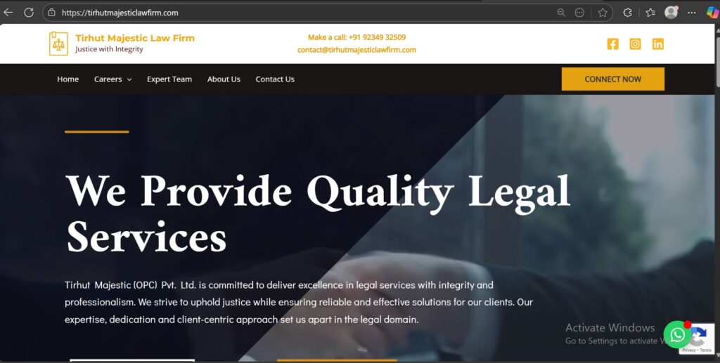 Features: Dynamic service management, lawyer profiles, online appointment form, and blog