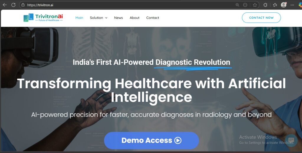 Key Features: Product showcase for medical imaging AI tools, case study modules, and lead