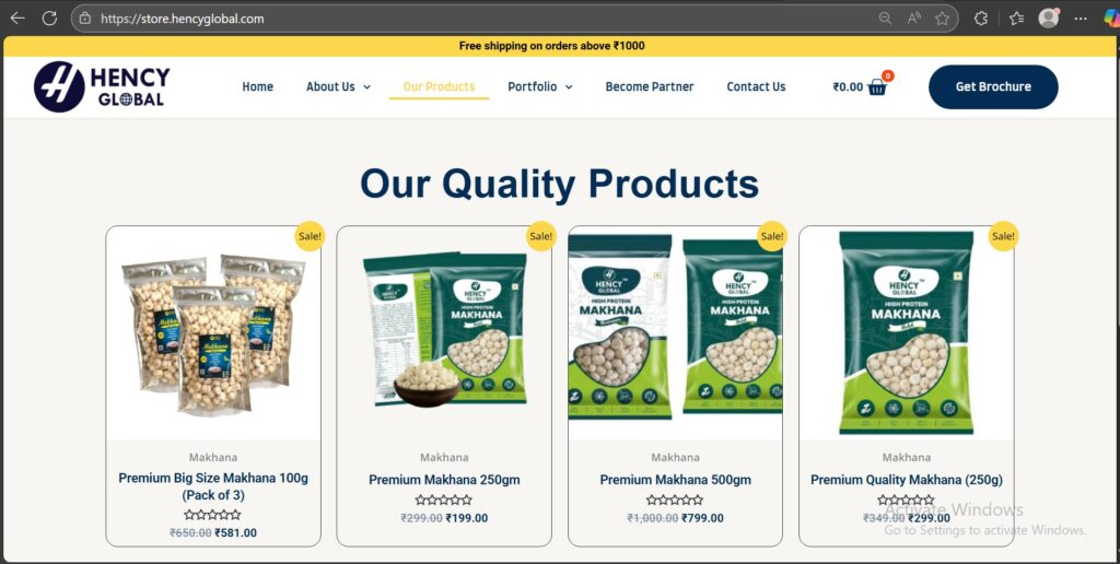 Built a custom eCommerce website integrated with Hency Global’s main domain. Key